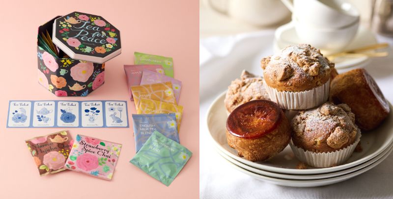 紅茶の日を記念したスペシャルBOX「Tea for Peace BOX」(5000円)をはじめ、「アメリカンマフィン 紅茶&りんご」(432円)や「栗のクイニーアマン」(400円)といった限定商品が登場します。
