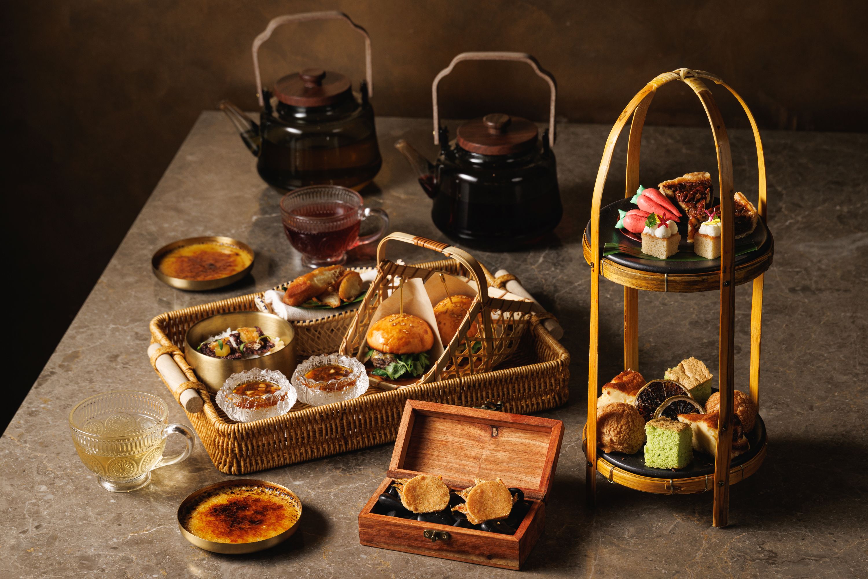 タイの五味といわれる酸味・塩味・甘味・旨味・辛味をテーマにしたアミューズに加えて、伝統スイーツ「カノムトゥアイ」をはじめとするタイらしいスイーツ&セイボリー全12種を提供します。フリーフローのドリンクにも「タイティー」や「アジアンティー」が含まれていますよ~!
