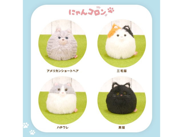 手のひらサイズのぬいぐるみ起き上がりこぼし「ぬいコロン」に、新シリーズ「にゃんコロン」が誕生! ハチワレ、黒猫、三毛猫、アメリカンショートヘアの全4種が登場です。倒れてもコロンッと起き上がる姿や、ぬいぐるみならではのムニムニした触感がとってもキュート♡ お部屋に飾ったり、ぬい活に連れていったりと、めいっぱい可愛がりましょ!