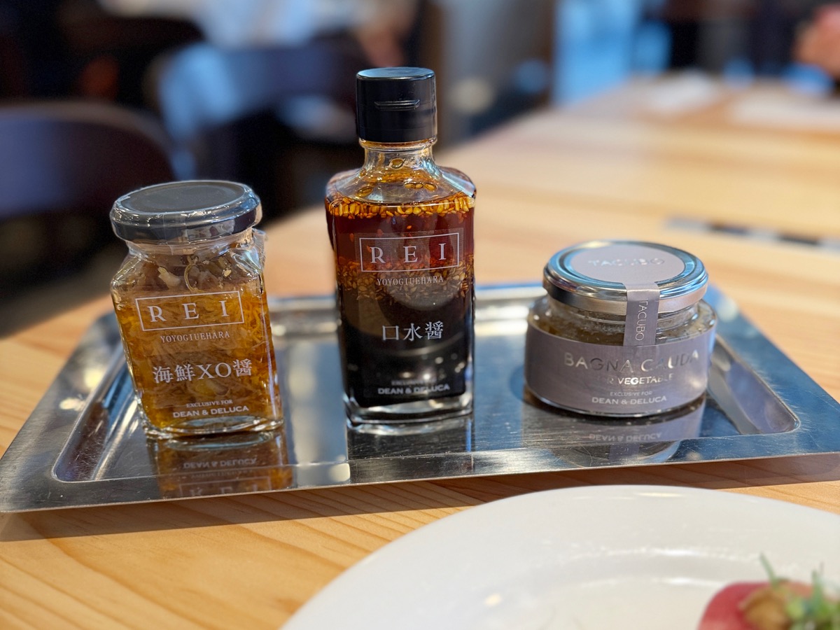 東京・代々木上原の「REI Chinese restaurant」オーナーシェフ高島泰弘さんとのコラボでは、中華料理に欠かせない4つの「醤(ジャン)」が登場。試食した「海鮮XO醬」(1944円)は海鮮の旨味が楽しめて素材の味わいを底上げしてくれるおいしさ。