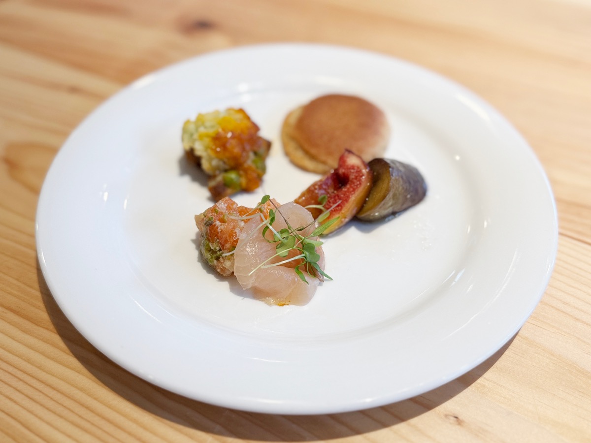 日本各地の生産者と協業したメニューの中には「静岡県産富士山サーモンのタルタルとホワイトサーモンのマリネ 江戸前ハーブ添え」「北海道産十勝若牛のサーロイングリル 埼玉県FENNELのヨーロッパ野菜を添えて」など品川店限定のものも。