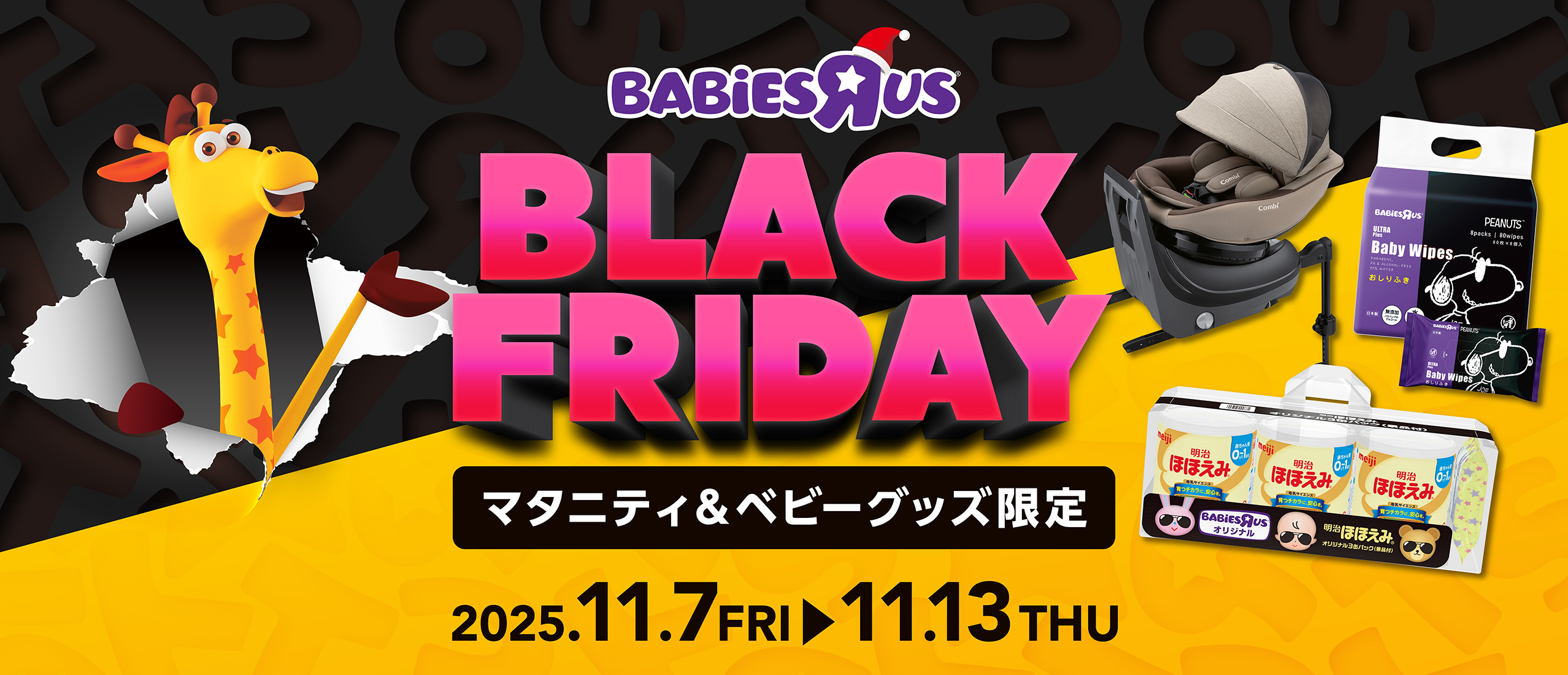 全国のトイザらス、ベビーザらス店舗(併設型店舗含む)、トイザらス・ベビーザらス オンラインストアにて、マタニティ・ベビー用品の「ブラックフライデー」セールを開催します。