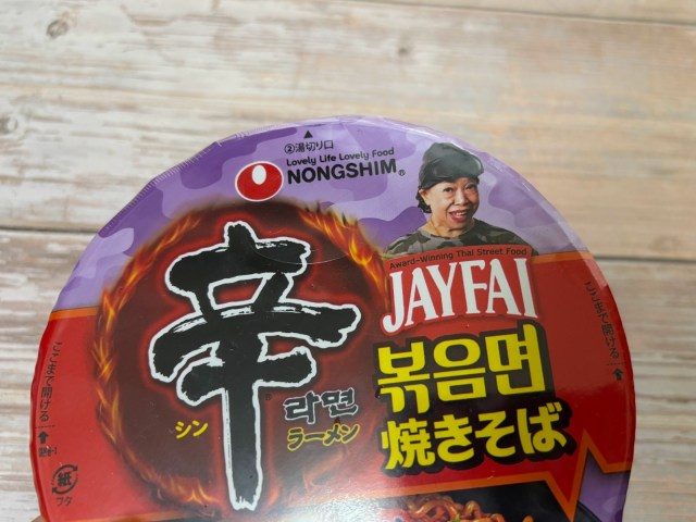 タイ・バンコクので40年以上営業し、ミシュランガイドに選定されたこともあるレストラン「ジェイファイ」。その女性店主ジェイファイ(Jay Fai)氏が監修したカップ麺の焼きそばタイプとして2025年9月に登場したのが、「辛ラーメン焼きそば トムヤムクン カップ」です。