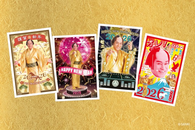 マツケンが華々しくフィーチャーされた年賀状は、宛名のQRコードをスマホで読み込むと、マツケンから新年のお祝いメッセージが流れる豪華な特典付き♪(マツケンボイスは2026年1月31日までの公開)
