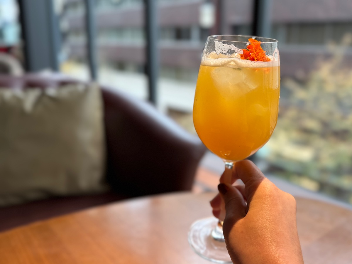 アフタヌーンティーのはじまりはウェルカムドリンク「オリエンタルシーブリーズ(モクテル)」で。こちらはオレンジやマンゴー、パッションフルーツを使ったノンアルコールのドリンクです。
