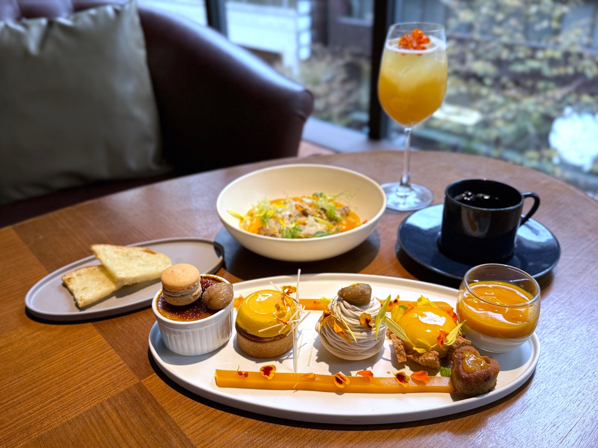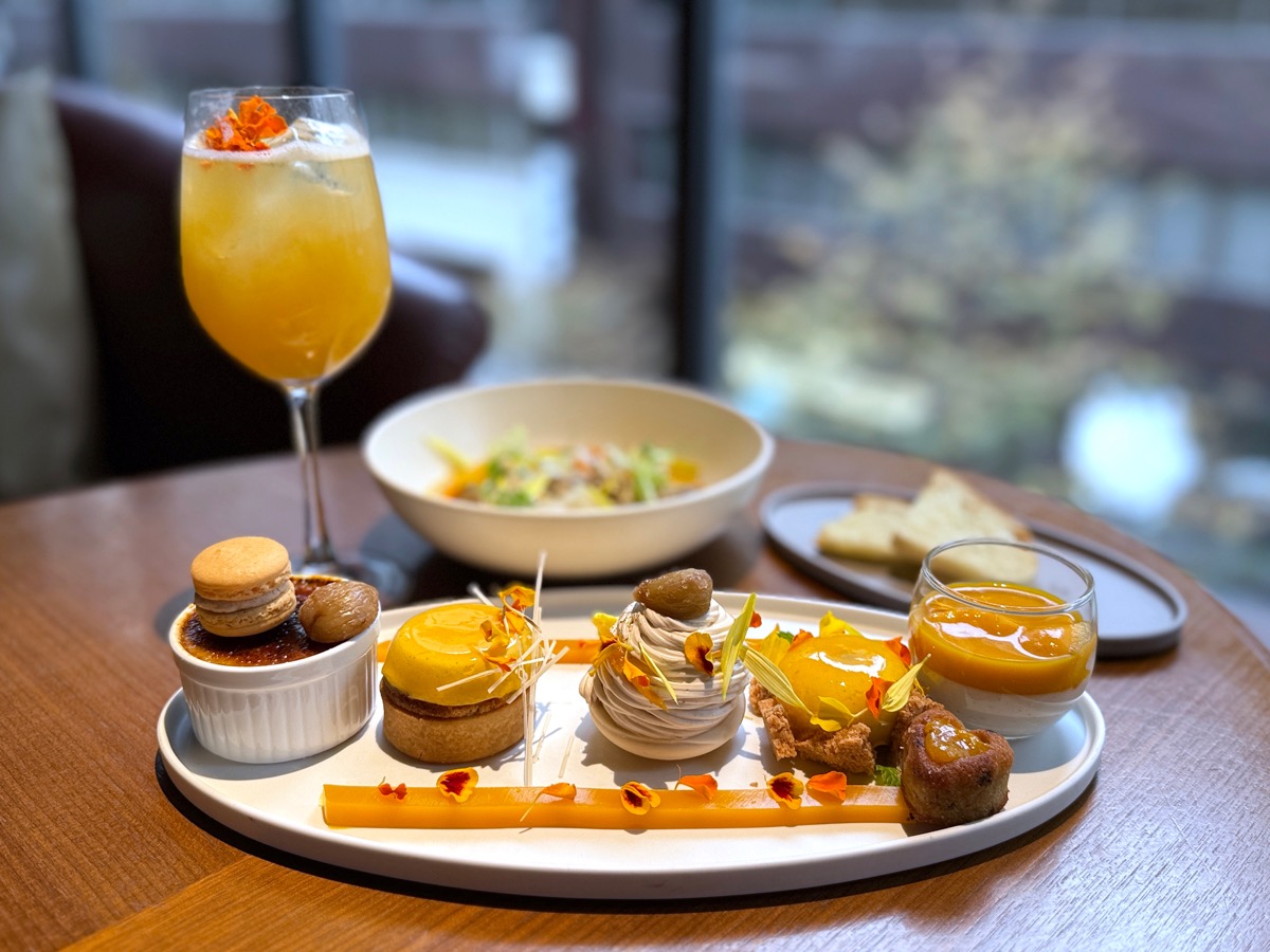 ハイアット セントリック 銀座 東京「NAMIKI667」で、2025年11月30日まで「オリエンタル オータム アフタヌーンティー」を開催中。動物性食材を一切使わないヴィーガン仕様のアフタヌーンティーは、オレンジカラーで統一されてとっても華やか!