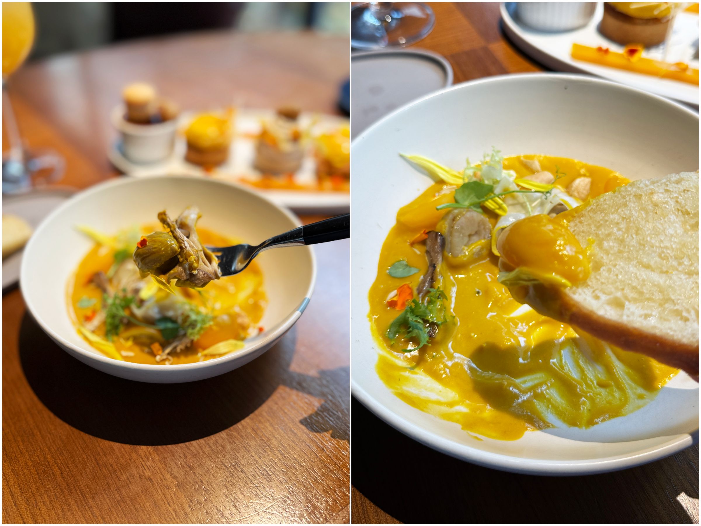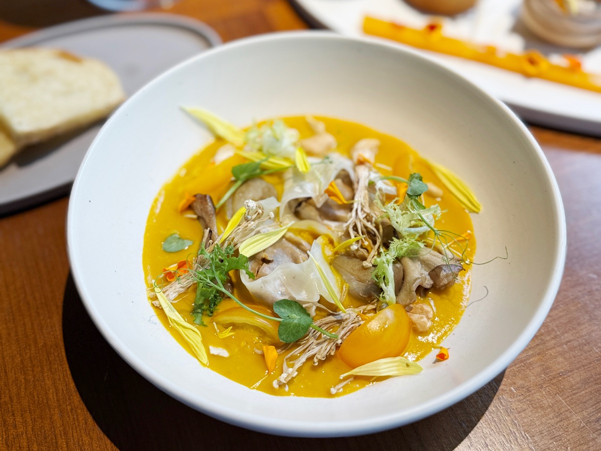 ゴロッと入った栗やたっぷりのきのこ、マッシュルームのダンプリングも旨味と食感で食べ応えあり。ほんのりフルーティーな味わいもあって、ものすごくおいしかった〜っ!