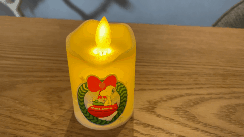 さっそくスイッチを入れてみると、あたたかい灯りとともにキャンドルの炎がゆらゆらと揺れました。本物のキャンドルのような灯りに思わずほっこりしちゃいます〜。