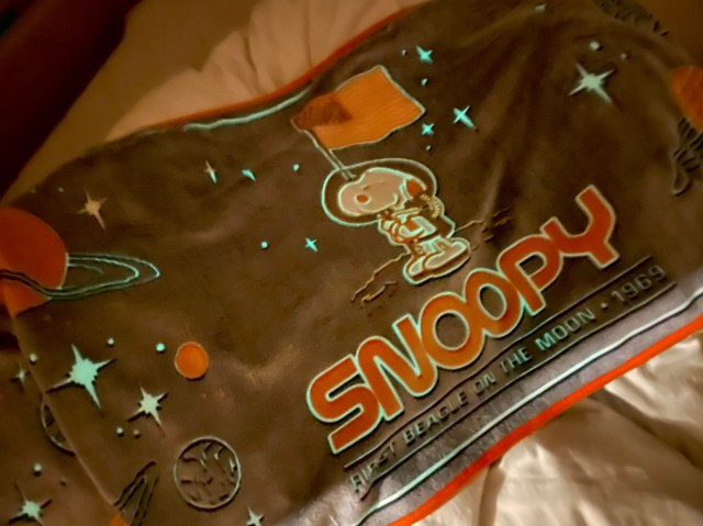 増刊号の付録は「暗闇で浮かび上がる蓄光の宇宙アート! スヌーピーデザインの光るBIGブランケット」。暗闇で浮かび上がる、蓄光……気になって仕方ありませんが、まずはブランケット自体をチェックしましょー!