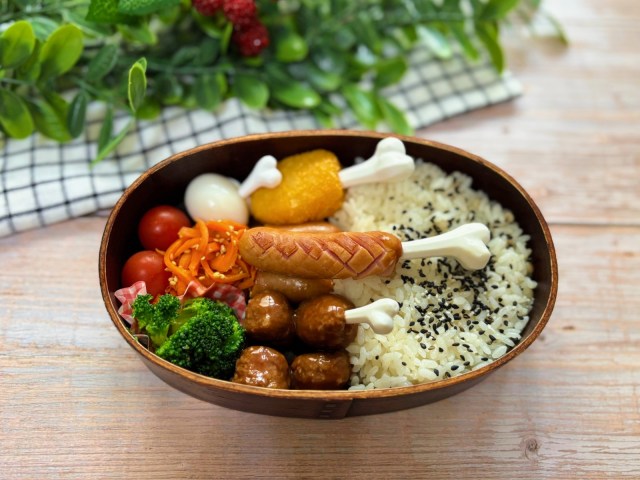 【ユニーク】いつものおかずが「マンガ肉」に…!話題を呼んだ「漫画肉ノ骨」がお弁当ピックになったよ🍖