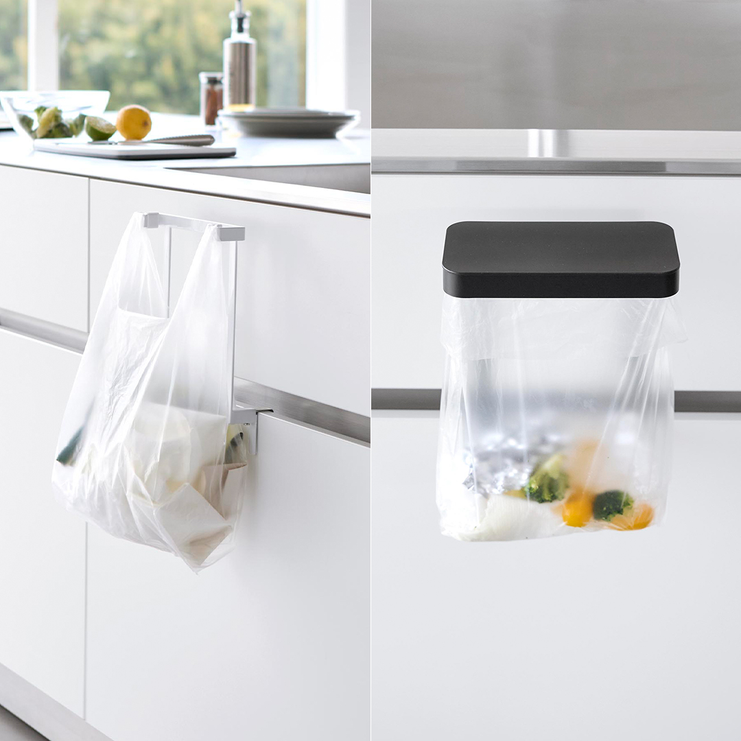 キッチンシンク下の収納扉や引き出しに取りつけられるレジ袋ハンガー。ボルトで固定できるため設置も簡単&引き出しの開閉時に袋が巻き込まれる心配もありません。