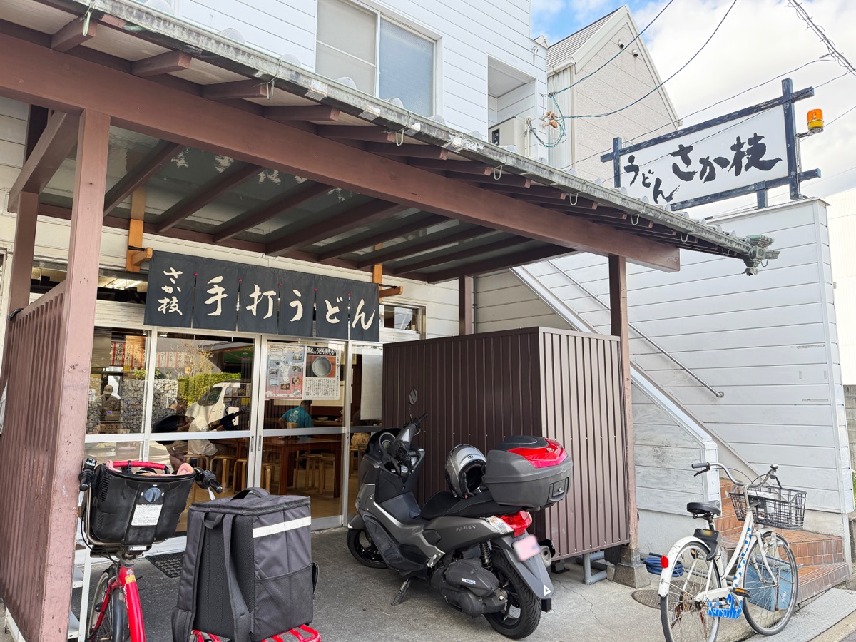 訪れたのは「さか枝うどん 本店」。香川県観光協会公式サイト「うどん県旅ネット」で県庁裏の超人気老舗セルフ店と書かれているうどん県お墨付きのお店です。