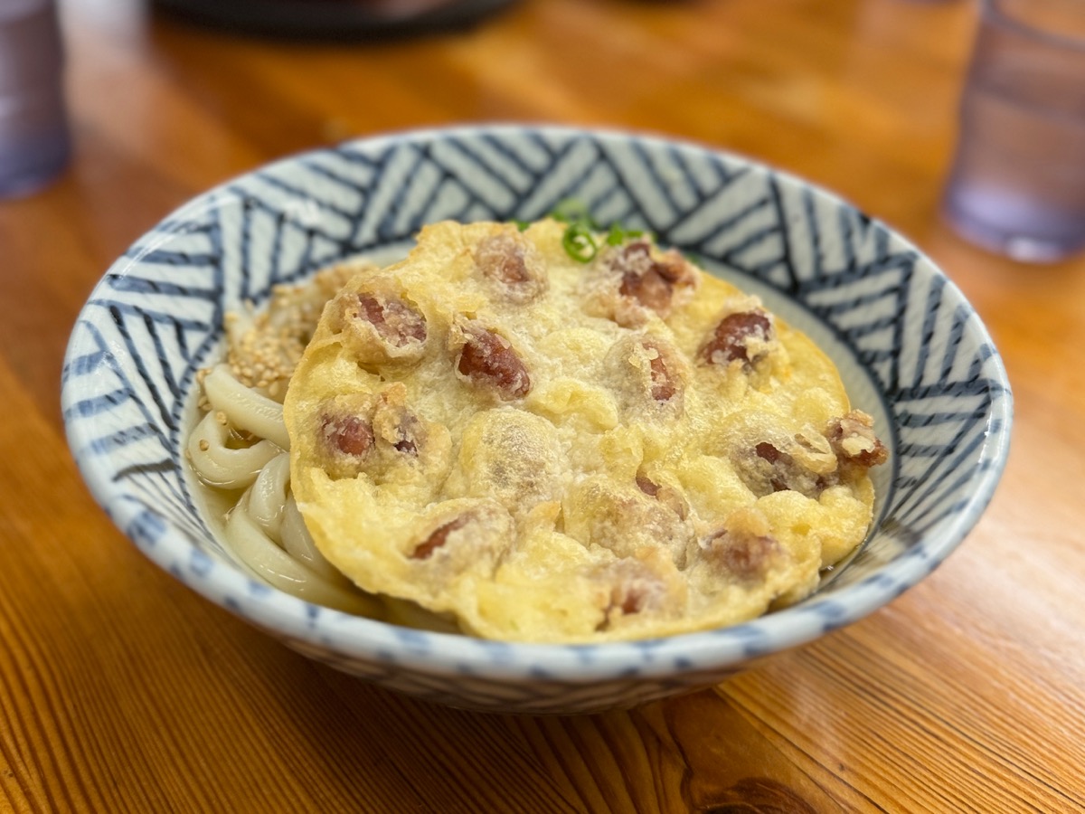 ガツンと濃厚ないりこだしの風味があるから、しっかりコシの強い麺との相性がいいのかも。天ぷらにもちゃんとだしの香りが行き渡って、うどんも天ぷらも味がボケないバランスが最高。