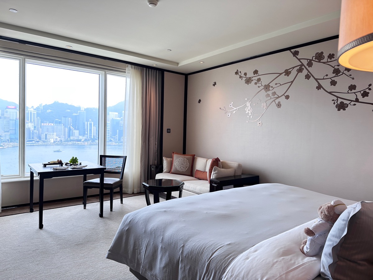 案内されたお部屋はビクトリアハーバーを一望できるパノラマビュー! グランドデラックスハーバービュールーム(キング)です。