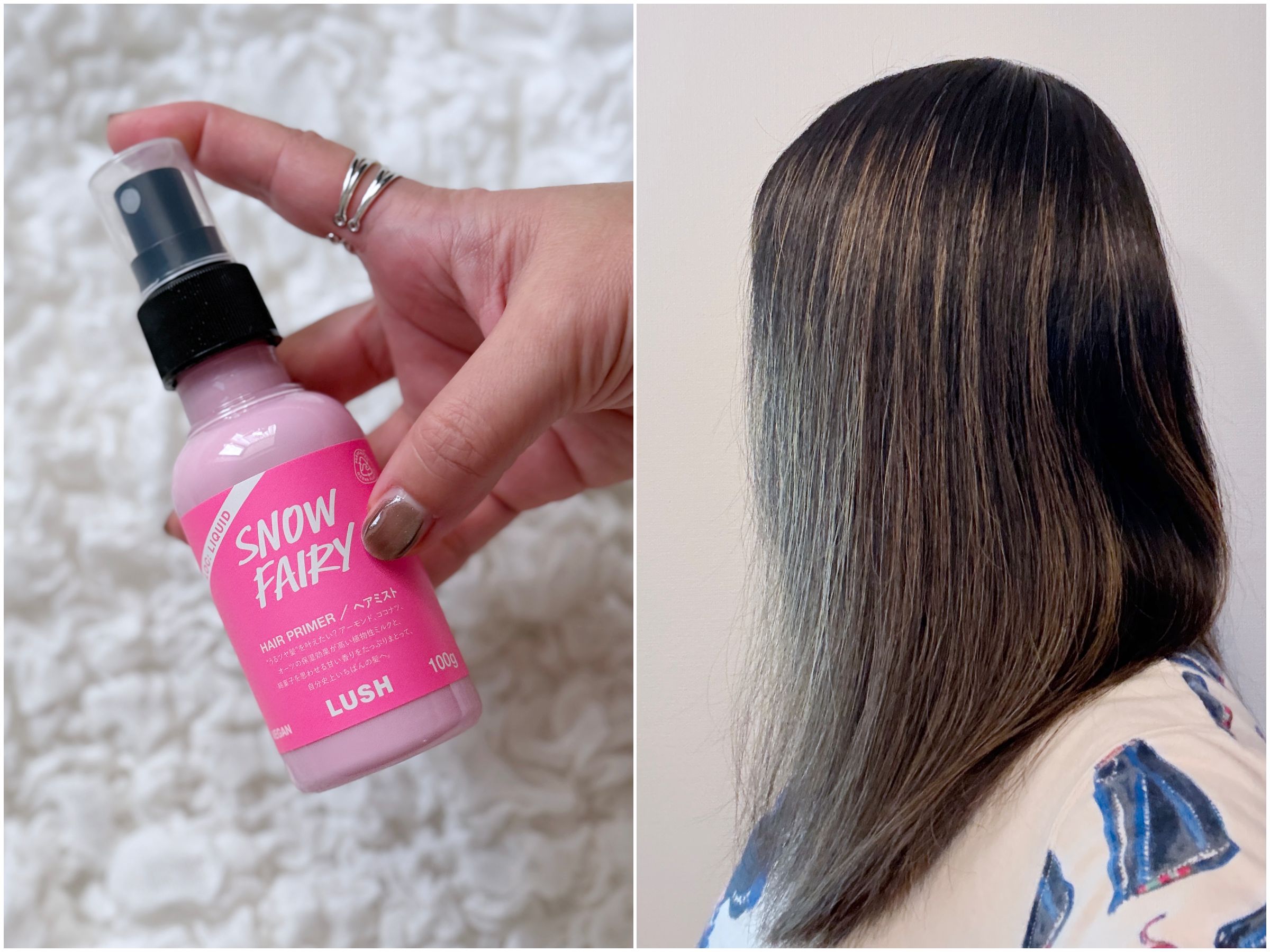 「スノーフェアリー シャンプー」の洗い上がりは、まるですっぴんのようなキュッとした感触になるのですが、このヘアプライマーを髪の絡まりを解きながらよくなじませて乾かすと……びっくりするほど手触りがやわらかくなって髪がまとまってびっくり! なんともハマる組み合わせ♡