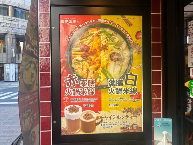 タムジャイサイゴーの「薬膳火鍋米線」は赤、白ともに1380円。2026年1月12日までタムジャイサイゴー全店で販売中です。