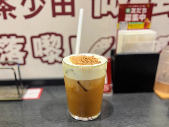 以前、タムジャイサイゴーの「砂砂湯」という辛いメニューの試食会に呼んでいただいた際、お店の方から「本場の香港では、麺類とともにに甘いミルクティーなどを楽しむ文化があるんですよ」と教えていただいたんです。それで今回も迷わず注文してみましたが……。