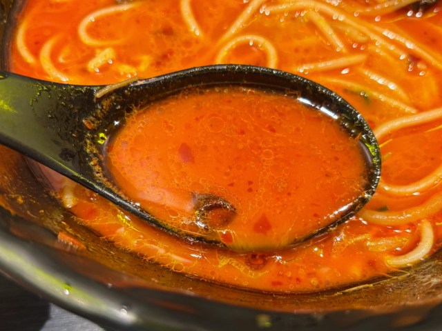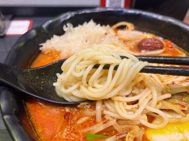 こちらは、最近人気の「火鍋」をイメージしたという冬限定メニュー。「赤」と「白」の2種類が登場する中、しびれる辛さが特徴の「赤」に挑戦してみました!