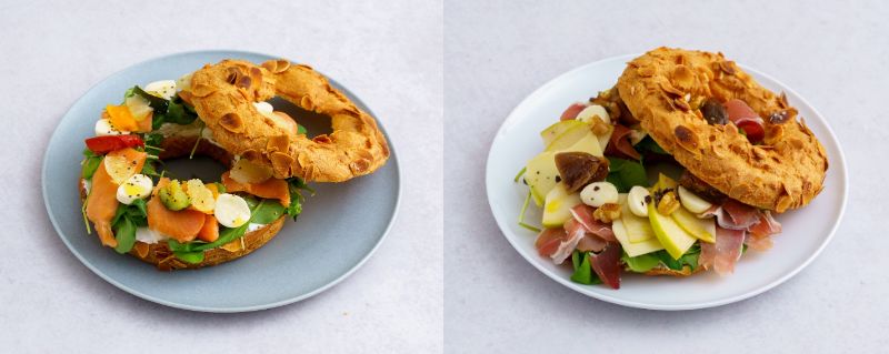 ベルギー本国のカフェメニューをもとにアレンジした、シュー生地に具材をサンドした軽食。「サーモン」と「生ハム&2種のチーズ」をラインナップしており、単品もしくはセット(スープ+ヨーグルト+ドリンク付き)から注文できます。