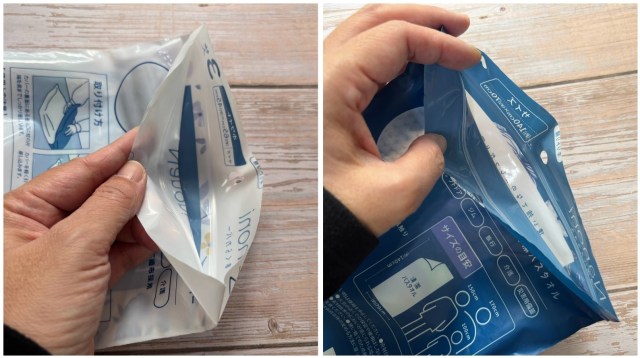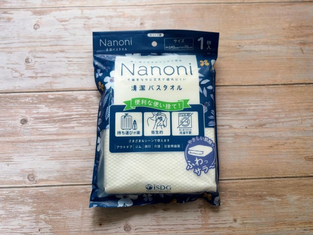 まずは「Nanoni 清潔バスタオル」(1枚入り/217円)をチェックしてみます。