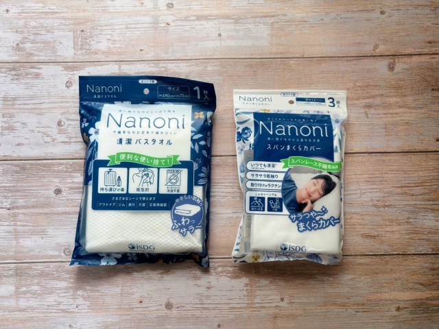 そんなふうに思っている私の目に留まったのが、医食同源ドットコムの「Nanoni 清潔バスタオル」と「Nanoni スパンまくらカバー」。