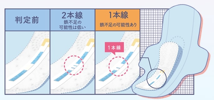 1本線の場合は「鉄不足の可能性あり」、2本線の場合は「鉄不足の可能性は低い」とのこと。生理のとき、ついでにチェックできるだなんてラクチンですよねぇ。