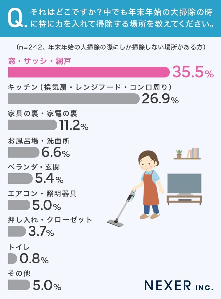 ちなみに……今回の調査では、約半数が「大掃除のタイミングでしか掃除しない場所がある」と回答していたのだそう。