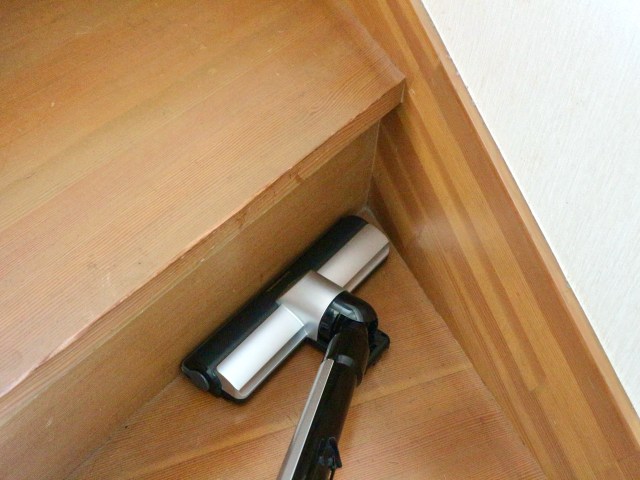 階段の角やカーブしている部分はいつも、掃除機でガチャガチャやってもホコリが取れなくて、結局はクイックルワイパーや雑巾などで拭きとって仕上げるしかありませんでした。