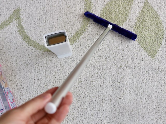 柄は細身でつなぎ合わせても全長は約60cmと短め。モップ部分はスティック形状で、気になるところだけササっとお掃除ができそうです。
