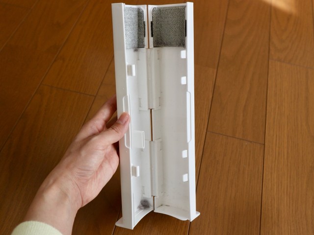 ケースの中にたまったホコリは、フタをパカっと開けてそのままゴミ箱へポイッと捨てればOKです。ただ、私は勢いよく開けすぎてホコリがちょっと舞っちゃったので、その点だけは注意が必要だなと思いました。