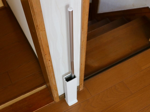 サイズはとってもコンパクトで、階段の近くに立てて置いておけました。