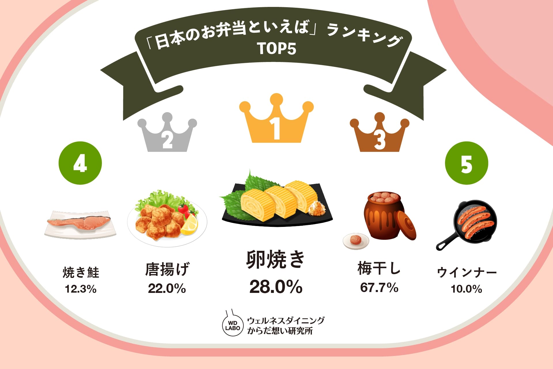 冷凍宅配食事業を展開するウェルネスダイニング株式会社では、全国の25~65歳の男女 計300名を対象に「お弁当総選挙2025」をおこないました。投票によって選ばれた「テンションが上がるおかずTOP5」はこちらッ!