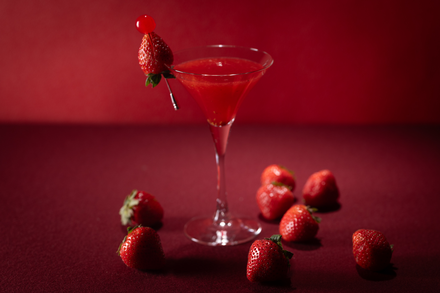 お酒好きならチェックしておきたい、いちごを贅沢に使用したロゼシャンパーニュベースのカクテル。フルーティーで果実味のあるロゼといちごの相性は抜群です。ちなみにこのカクテル、冬に咲く寒椿をイメージしているのだそう!