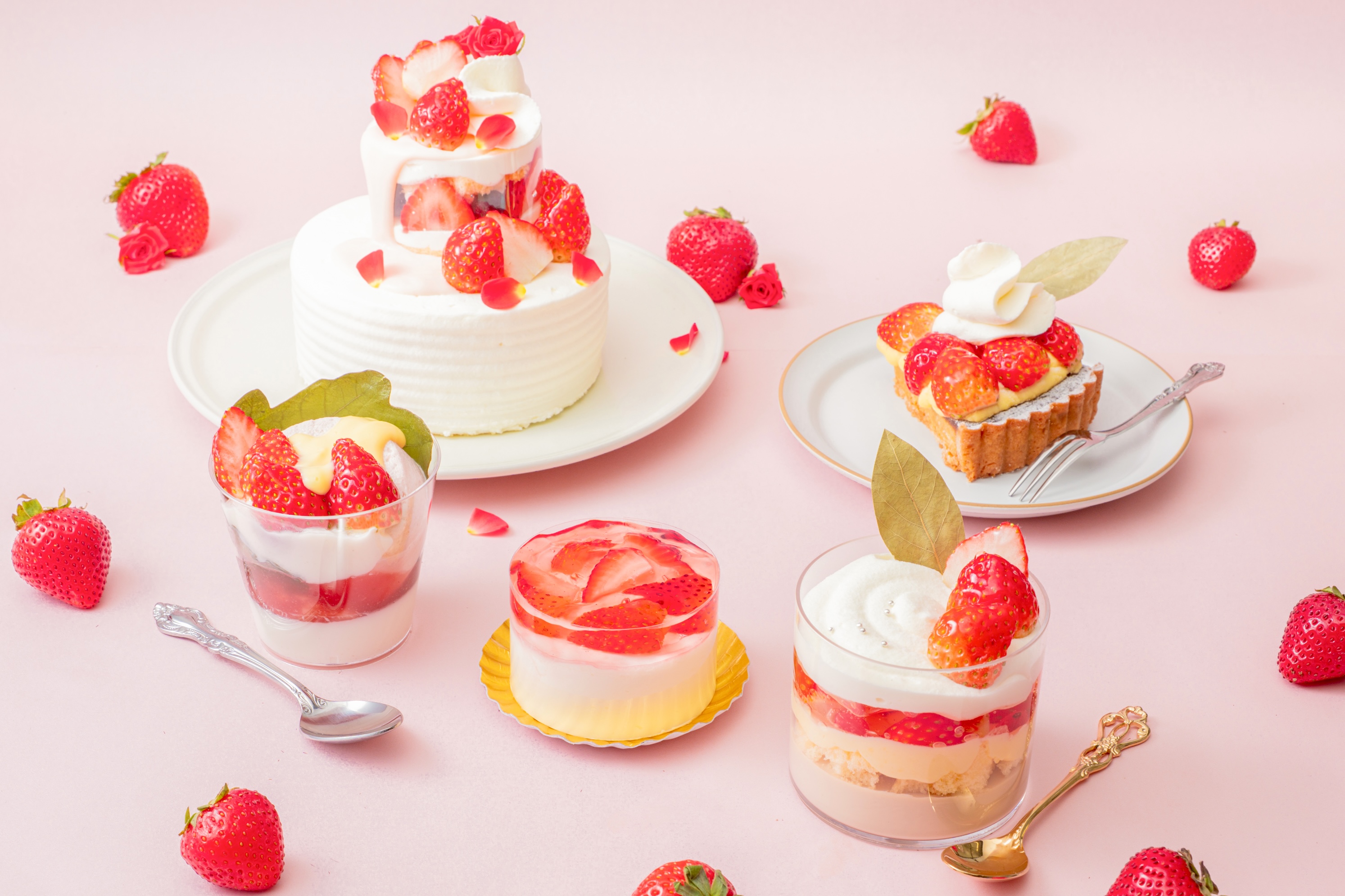 国産のいちごを使用した全6品を販売。フレッシュいちご×口溶けなめらかなパンナコッタを楽しめる新作パルフェをはじめ、ケーキやタルト、ムースなどの “いちご尽くしスイーツ” をいただけちゃいます。