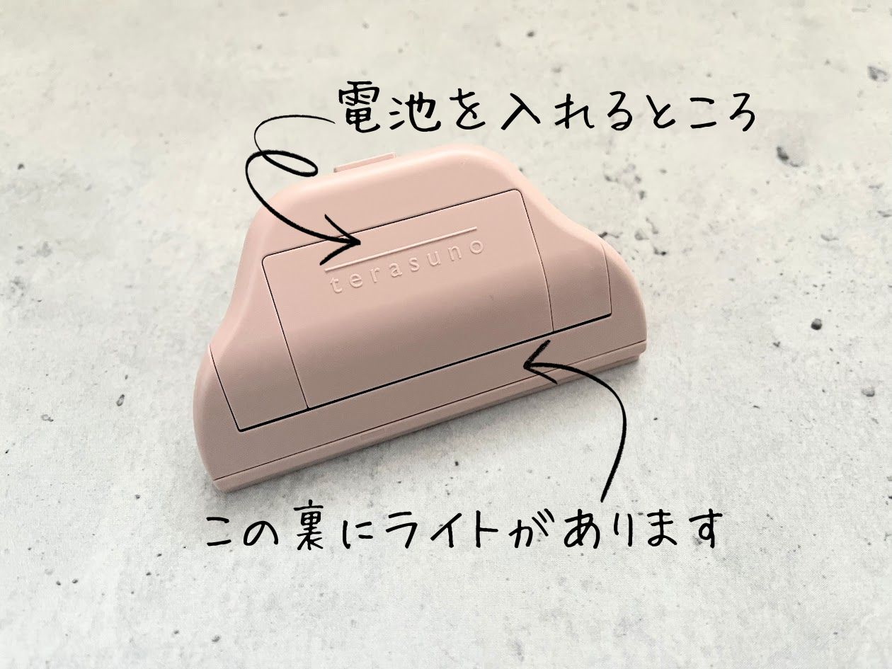 “手元だけを照らしてくれるクリップ” ことサンスター「ひかるクリップ terasuno(テラスノ)」。電池式で別売りの単4電池2本が必要となります。