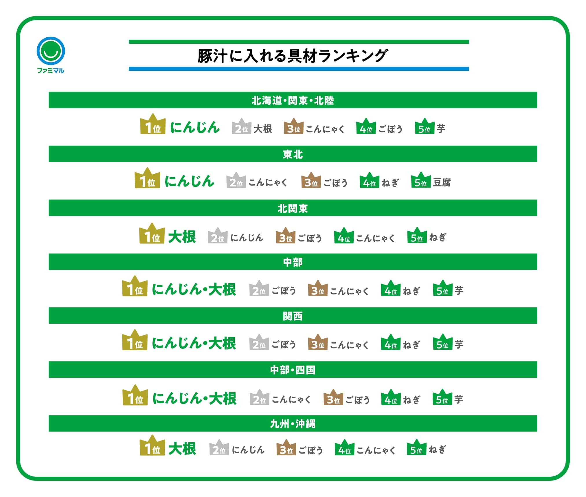 ファミリーマートでは、地域ごとの味の好みにあわせた豚汁を販売しているそう。ご当地豚汁を体験してみたいなら、その土地のファミリーマートへ足を運んでみるといいかもよ♪
