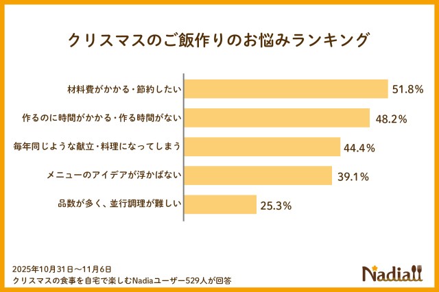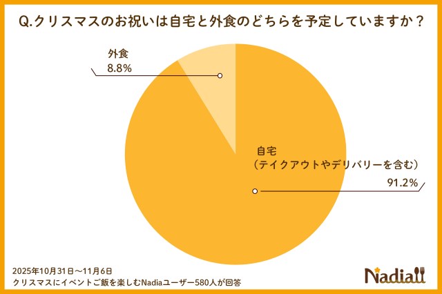 料理メディア「ナディア(Nadia)」が公開したのは、「クリスマスのイベントご飯」に関するユーザーアンケートの結果。