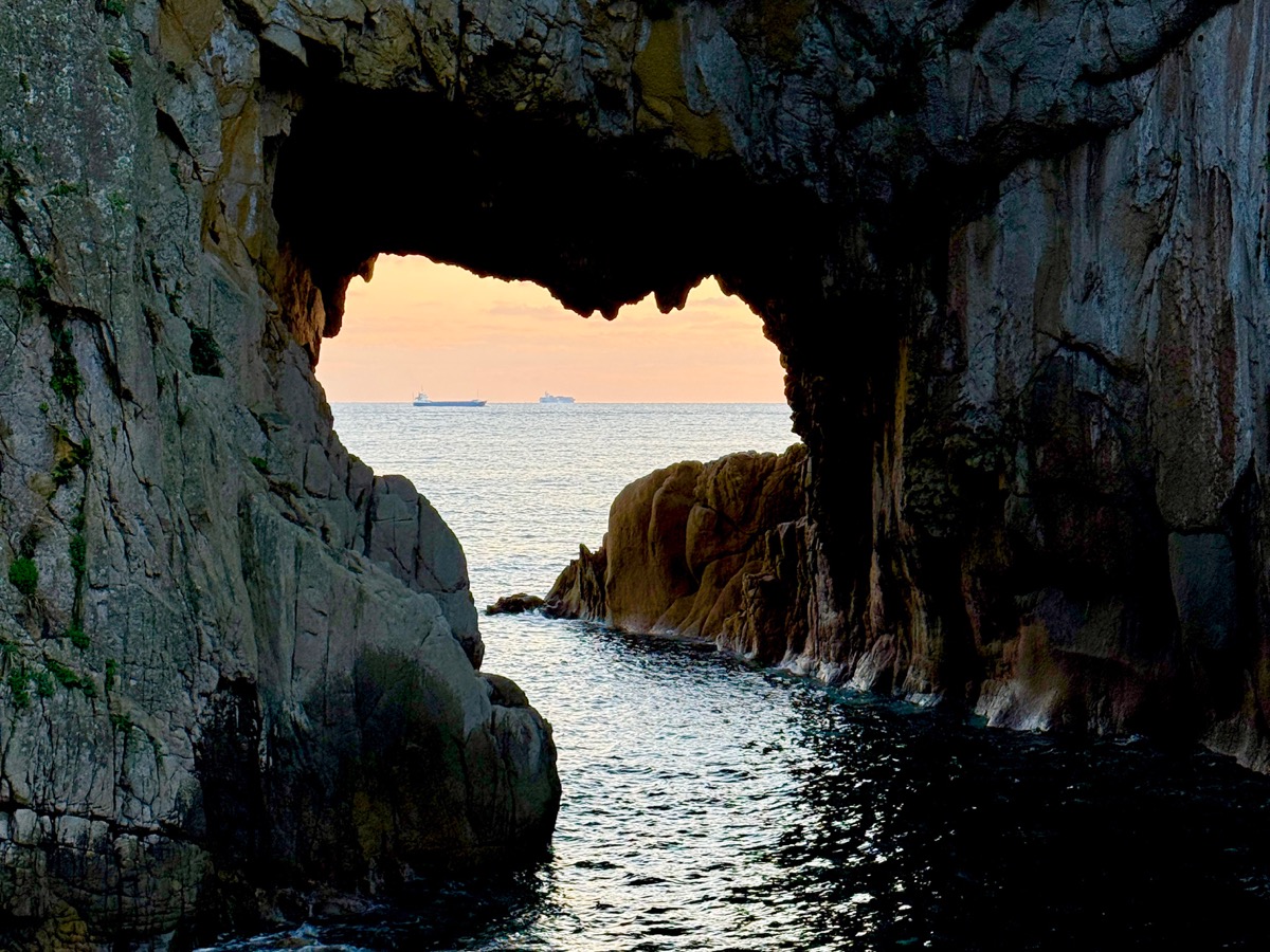 ラパキビ花崗岩という日本では足摺岬以外に見られないめずらしい岩石から、このあたりの地形が1300万年前のものと分かっているというのもスゴい。白山洞門は、一体どのくらいの時間を経てこの姿になったのかなあ。
