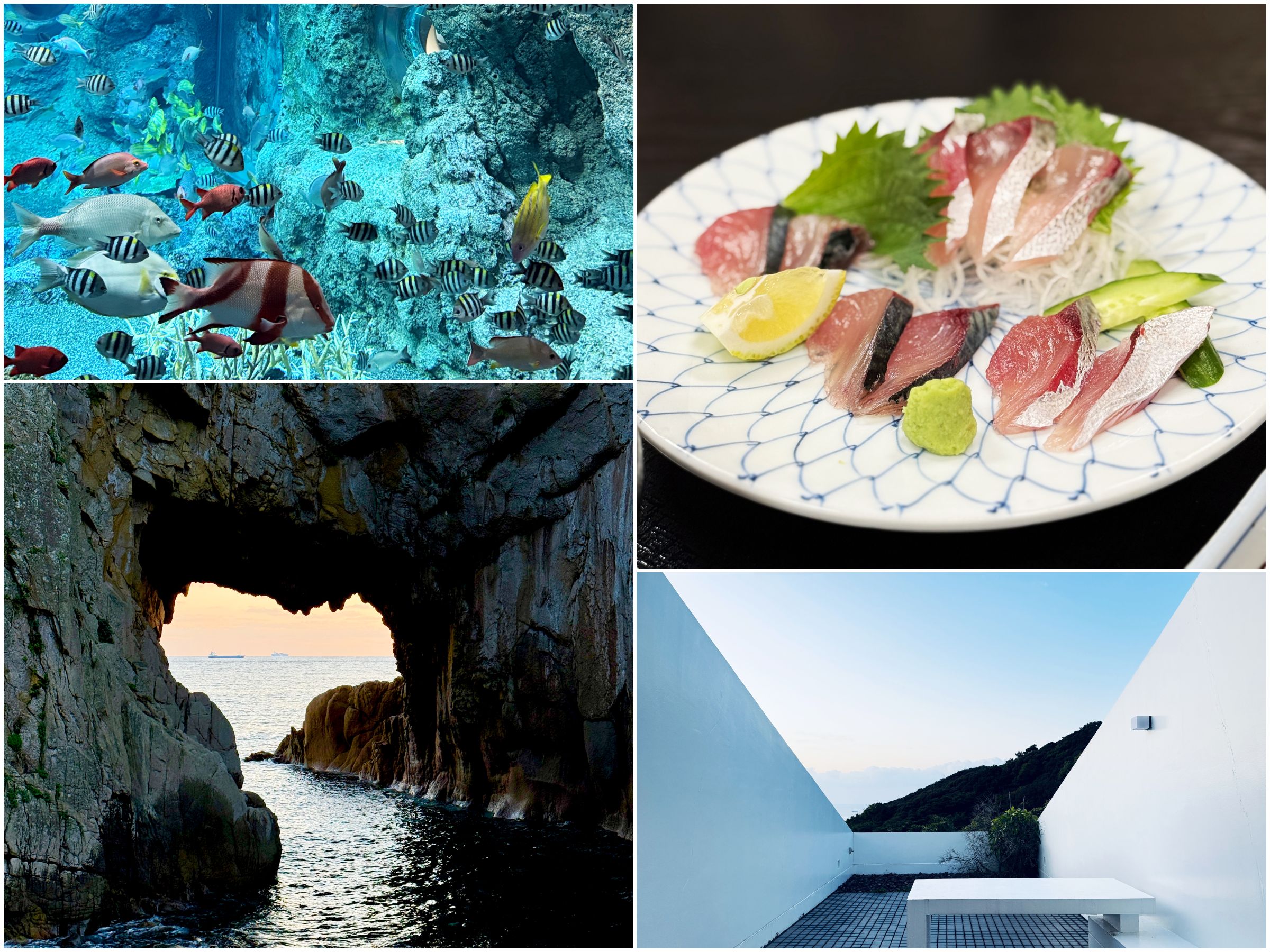 最後にご紹介するのは足摺海洋館「SATOUMI」。登録有形文化財である「足摺海底館」のほど近くにある水族館です。日本初の海中公園に指定された竜串(たつくし)湾を一望できる絶景ロケーションがまず最高!