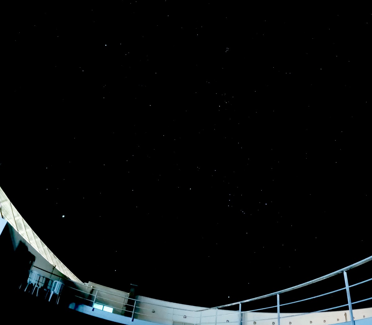 夜に実際に展望台に行ってみたら、そこには息を呑むほど圧倒的な星空が……! 空を「天蓋」と称する理由がわかるほど、星々がまあるく天を覆っていました。