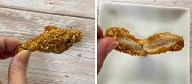 ちなみに、冷凍庫から取り出してすぐの凍った状態で食べてもOKらしいのでチャレンジしてみましたが……か、固いっ!! 衣も鶏肉もカチカチで噛むのが大変です。でも、歯ごたえがある食べ物が好きな人には、むしろ好まれるかも!?