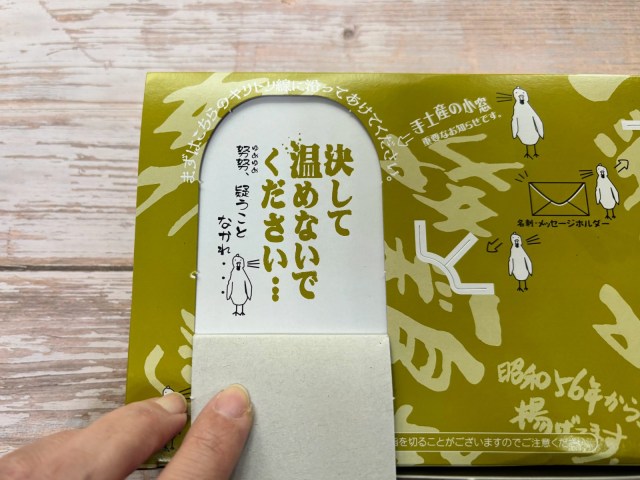 「決して温めないでください…」の文字。フォントが迫力あるのもあいまって、うっすら怖くなってきました。まさかここまで本気で温め厳禁だとは。