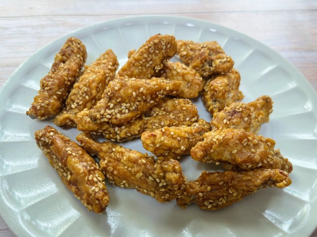 手羽中の唐揚げっておいしいですよね。特に、揚げたてをアツアツのまま頬張ると、もう最高~~~……って、え?