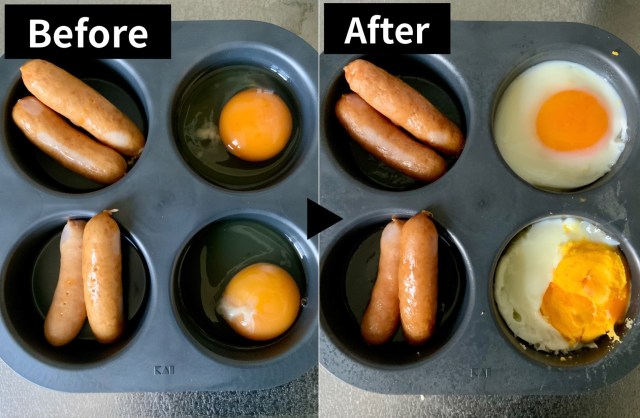加熱ムラが出てたまごの火の通りが位置によって違いましたが、問題なく調理できます。何度か試して自宅の電子レンジのクセがわかれば、もっとキレイに仕上がりそうです。
