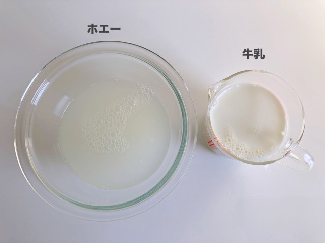 成功のポイントは、ホエーと牛乳を同量にすること。