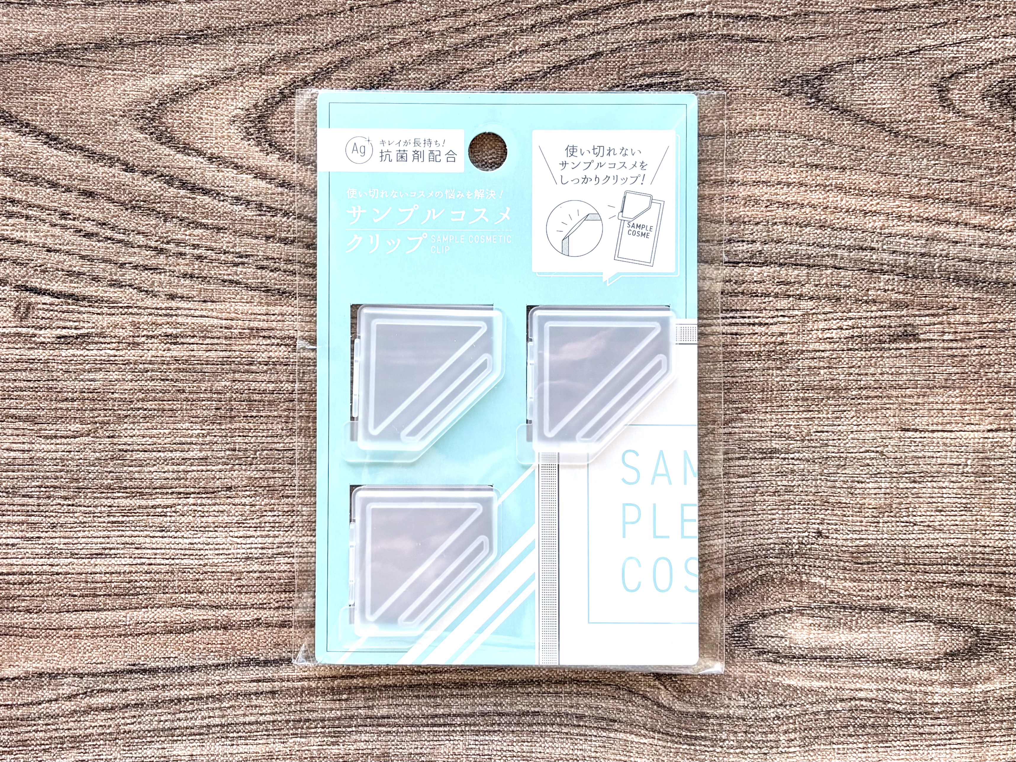 セリアのコスメコーナーで見つけた「サンプルコスメクリップ」というアイテム。名前からも察しがつくとおり、使いかけのサンプルコスメの開け口をとめるためのクリップなんです。