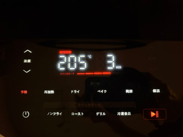 モードや温度、時間は直感的に操作できました。ノンフライ以外にも、ロースト、グリル、冷凍食品、再加熱、ドライ、ベイク、発酵、保温……と、たくさんのモードが選べて驚き!