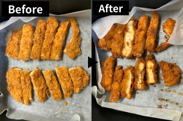時間がたって衣がやわらかくなってしまったチキンカツも、ノンフライヤーの手にかかればほぼ揚げたてレベルに復活します。