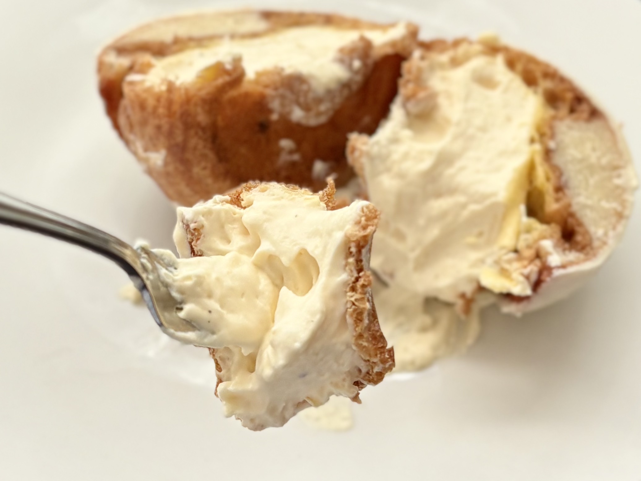 もしや丸ごとガブッといくほうが良かったのかしらと思いつつも、切ってしまったものは仕方ありません。フォークですくって食べてみると、クリームの味わいがとっても濃厚〜!