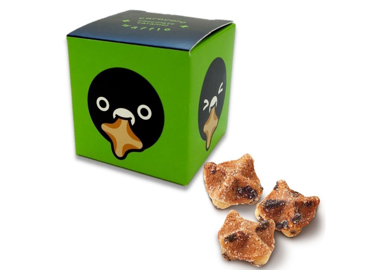 ワッフルケーキ専門店が手がける、ひと口サイズのコロコロワッフル。プレーンやメープルなどさまざまなフレーバーを出していますが、東京駅限定品は「チョコキャラメル」です。Suicaのペンギンが描かれたキューブ型パッケージにもご注目。